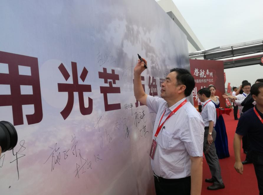 趙振元出席隆基股份樂(lè)葉光伏科技有限公司(泰州)2GW太陽(yáng)能電池組件項(xiàng)目投產(chǎn)儀式