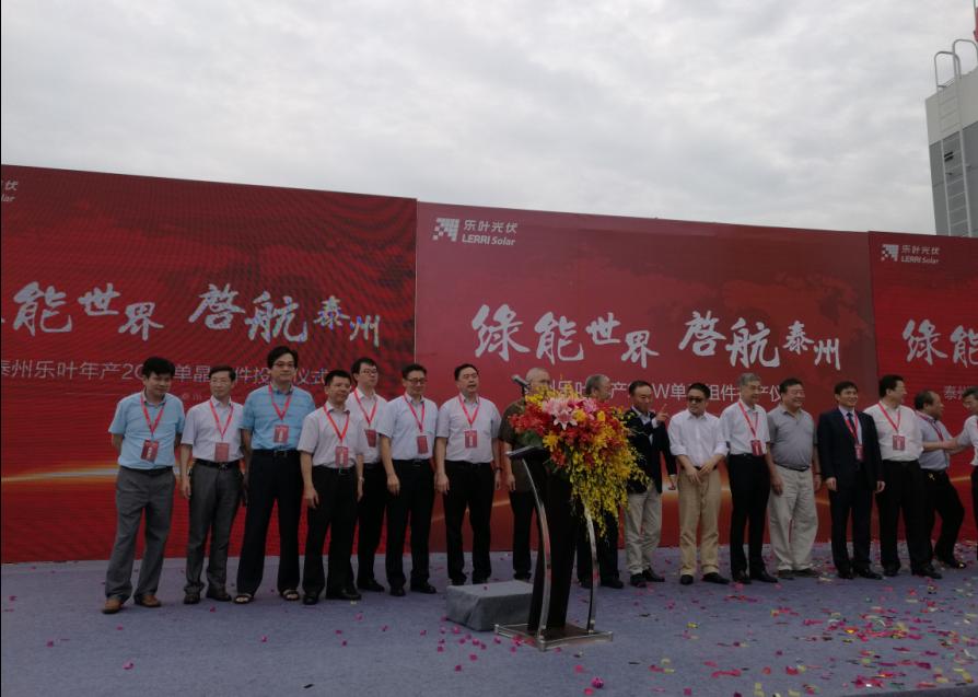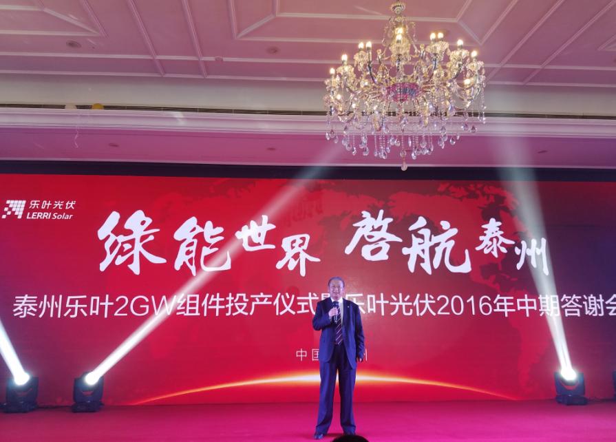 2016年9月6號(hào),細(xì)雨綿綿,彩旗飄展,江蘇泰州市海陵區(qū)隆基樂(lè)葉2GW太陽(yáng)能電池組件一體化項(xiàng)目舉行隆重的投產(chǎn)儀式。隆基股份董事長(zhǎng)鐘寶申發(fā)表主旨演講。國(guó)務(wù)院參事、中國(guó)可再生能源學(xué)會(huì)理事長(zhǎng)石定寰、國(guó)家發(fā)改委國(guó)際新能源研究所所長(zhǎng)王進(jìn)、招商新能源CEO李原、泰州市海陵區(qū)徐克儉書記等先后發(fā)表了熱情洋溢的講話。充分肯定了泰州樂(lè)葉建設(shè)的高速度、產(chǎn)能的高效化、盛贊隆基股份已成為國(guó)際單晶硅、硅片、電池、組件的最大供應(yīng)商之一。