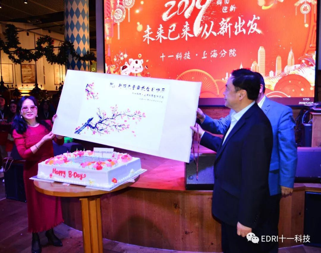 晚會(huì)期間正逢趙振元同志的生日,上海分院全體員工共同為趙振元同志送上了深深祝福,一張張珍貴照片記錄了趙振元十八年來(lái)帶領(lǐng)十一科技來(lái)從弱小走向強(qiáng)大的歷史過(guò)程,趙振元同志表示,我把大家的祝福看成是在非常不確定的2019年繼續(xù)帶領(lǐng)大家一起前行的期盼,我將與大家共度這充滿挑戰(zhàn)與十分困難的一年?,F(xiàn)場(chǎng)氣氛歡樂(lè)而溫馨。