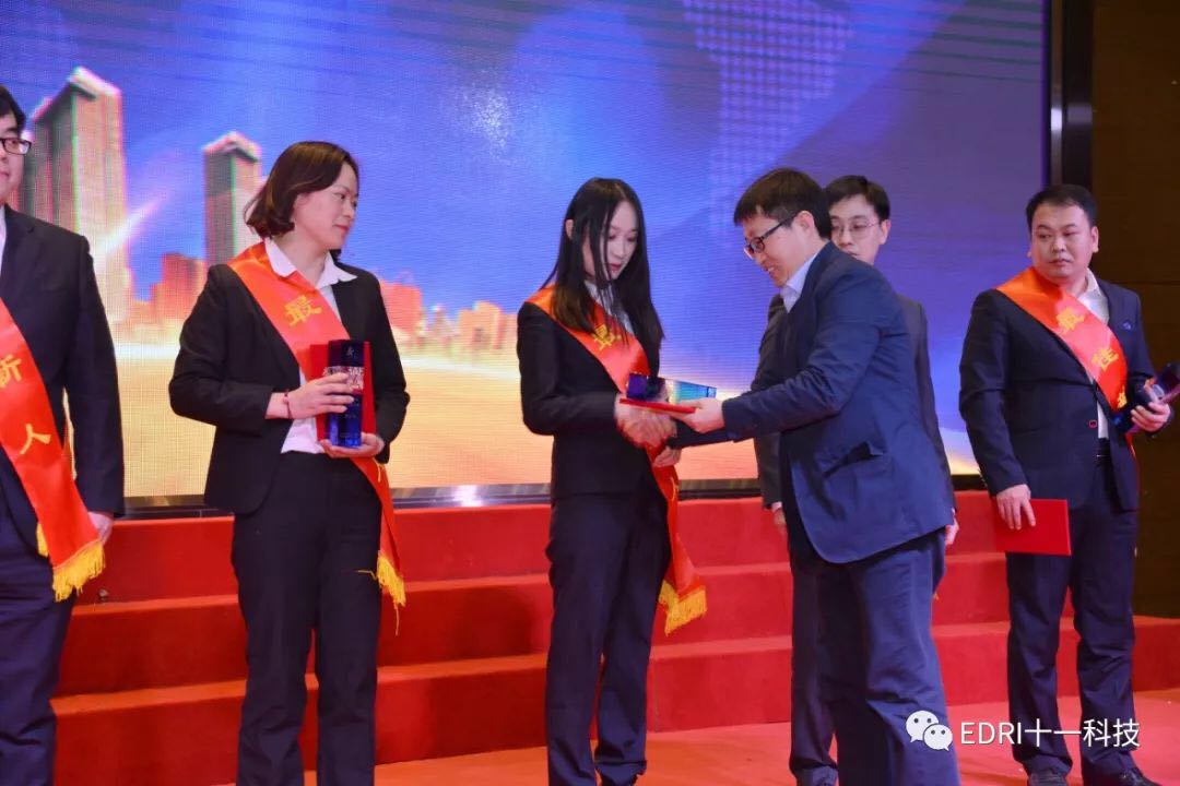 表彰環(huán)節(jié),由華東分院執(zhí)行院長(zhǎng)張平主持,十一科技高級(jí)專務(wù)、華東分院黨總支書(shū)記劉勝春首先宣讀了華東分院2018年度表彰文件,全體參會(huì)人員集體觀看了表彰視頻,短短9分鐘視頻,高度概括了受表彰人員的先進(jìn)事跡。會(huì)上共表彰了2018年度優(yōu)秀團(tuán)隊(duì)2個(gè)、2018年度最佳項(xiàng)目組2個(gè)、2018年度優(yōu)秀干部10名、2018年度巾幗風(fēng)采5名、2018年度最佳市場(chǎng)開(kāi)發(fā)人員5名、2018年度最佳新人獎(jiǎng)6名、2018年度優(yōu)秀后勤人員2名、2018年度先進(jìn)個(gè)人36名。在熱烈的氣氛中,68名受表彰人員身披紅綬帶,分批走上舞臺(tái),接過(guò)院領(lǐng)導(dǎo)頒發(fā)的獎(jiǎng)杯和證書(shū)。