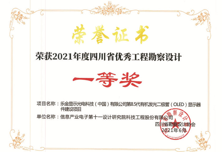 • 樂金第8.5代有機(jī)發(fā)光二極管四川省一等獎(jiǎng)